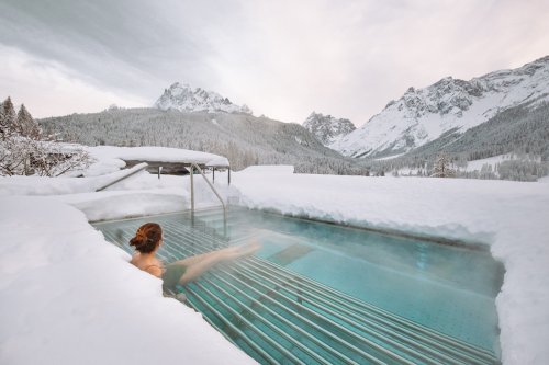 menší venkovní vyhřívaný panoramatický bazén; Dolomiti Panorama SPA