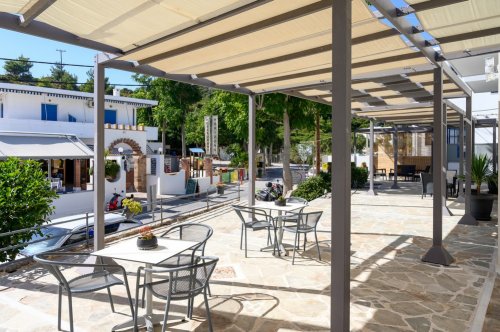 Příjemný rodinný penzion Ilioxenia leží 20 m od oblíbené pláže Agia Fotini. Moderní stavba, dekorovaná přírodním kamenem, se nachází v klidné oblasti s několika dalšími ubytovacími zařízeními, které se nachází u pobžeží letoviska. V přímém okolí najdete nákupní možnosti, několik tradičních taveren i kaváren. V zadní části lokality jsou zelené háje a mírné pohoří vytvářející příjemnou atmosféru v kontrastu s modrými vodami moře. Hlavní město ostrova Chios je vzdáleno pouhých 12 km (letiště 8 km). Budete jej moci snadno navštívit a to díky místní dopravě provozující autobusové spojení po ostrově.