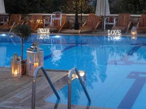 Hotelový komplex s výtečnou rodinnou atmosférou tvoří hlavní budova provedena ve stylu antické vily a několik menších klubových budov. Uvítá Vás vstupní hala s recepcí a výtahy, k dispozici Vám bude lobby, společenský salónek, minimarket, konferenční místnost. K relaxaci Vám poslouží hotelové Spa centrum se saunou, vířivkou a možností masáží či kosmetických a revitalizačních procedur. Nechybí fitness centrum. Stravování obstará hotelová restaurace kombinující bufet s a´la carte stravováním (snídaně bufet, večerní menu a´la carte). Venkovní část nabízí velký bazén s oddělenou dětskou částí, které obklopuje sluneční terasa s lehátky a slunečníky (v ceně) a pool/snack barem.