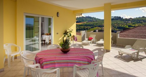 apartmány mají terasu s výhledem na moře a vybavením + sušák na