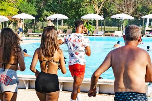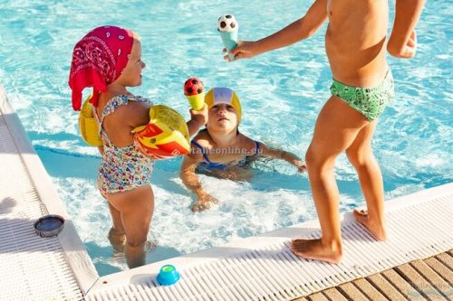 bazén, venkovní bazén, bazén pro děti, parkoviště, zahrádka, dětské