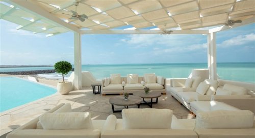 nabízí soukromou pláž s jemným pískem, panoramatický infinity bazén