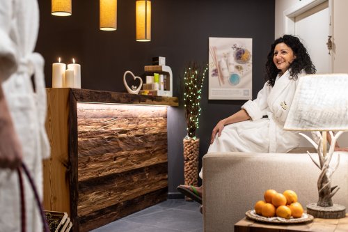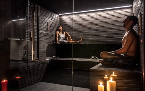 sauna, pára, multifunkční sprchy, relaxační koutek s lehátky)