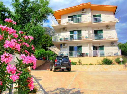 Apartmán A6+4 pro 8–10 osob – prostorný apartmán, 3 dvoulůžkové ložnice, 2 koupelny, obývák se 2 gauči, kuch. kout, strana moře. Cena je pro 8 osob, 9. a 10. osoba za příplatek, k apartmánu jsou 2 parkovací místa; cena na vyžádání.