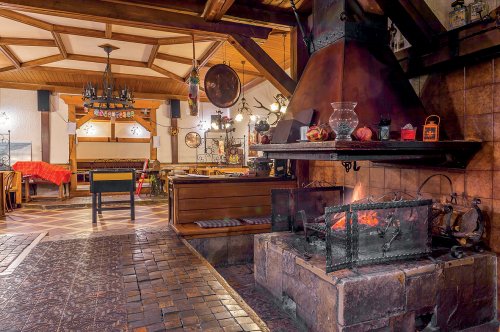 recepce, restaurace, bar s krbem / 2× týdně piano bar, taverna,