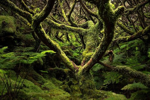 pralesa plného podivně zkroucených stromů obrostlých mechem. Zavítáme