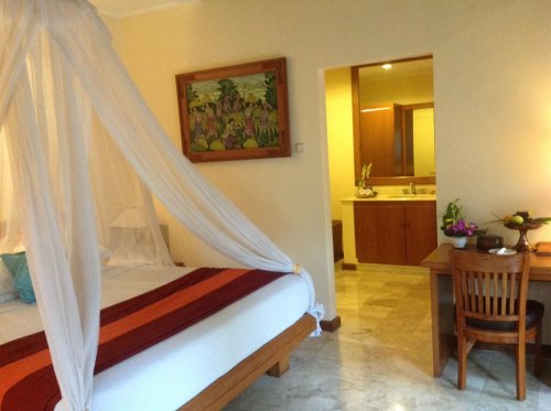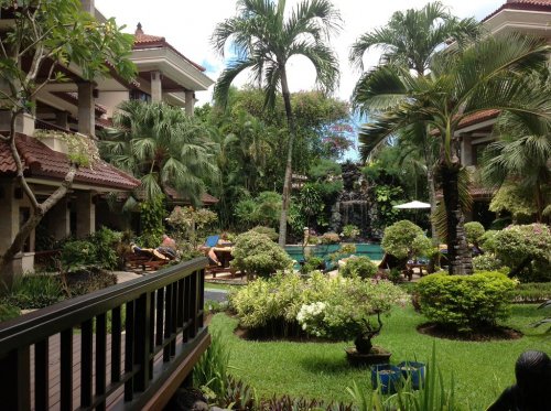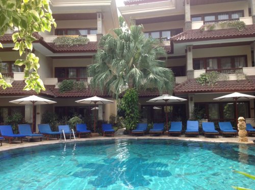 Hotel se nachází cca 100 metrů od hlavní ulice v Sanuru (obchody, restaurace). Hotelový resort poskytuje ubytování v moderních klimatizovaných pokojích s týkovými a mramorovými prvky, TV, klimatizací, ledničkou, koupelnou a balkonem. Část pokojů má výhled na na bazén, část do zahrady. Wi-fi je poskytováno zdarma. Koupání: Veřejná písčitá pláž vzdálená cca 50 m od hotelu nebo hotelový plážový klub (cca 500 metrů). Dále pak hotelový bazén. Hotel nabízí i hotelový shuttle bus k dopravě do centra Sanuru nebo na hotelový Beach Club. Hotelový bazén nabízí i malý vodopád, slunečníky a lehátka. K dispozici jsou i wellness služby – nejčastěji různé formy masáží (za poplatek).