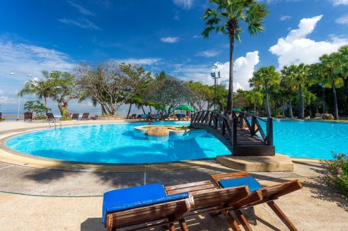 Hotel s vlastní pláží a fantastickým výhledem na buddhistický chrám se nachází v severní části letoviska Pattaya. Centrum samotného letoviska je vzdáleno cca 10 minut jízdy taxíkem. V okolí naleznete množství obchůdků, restaurací a thajských masáží. V základní nabídce jsou pokoje typu deluxe sea view. Na vyžádání a za příplatek jsou možné i jiné typy pokojů, Superior, Chalet nebo Suite.,