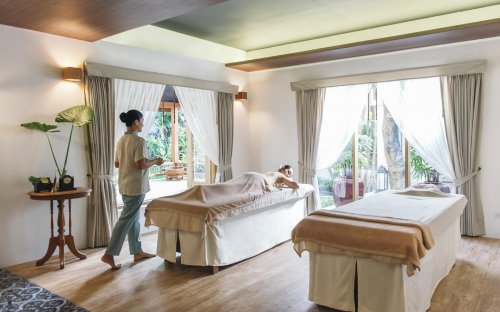 bazén s vodopádem, jacuzzi, fitness centrum, relaxační lázně s thajskou masáží a aromaterapií,