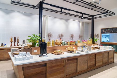 restaurace (nonstop) s thajskou i mezinárodní kuchyní, pekárna s nabídkou dortů a kávy, bar, babysitting, trezory, čistírna, konferenční sály.,