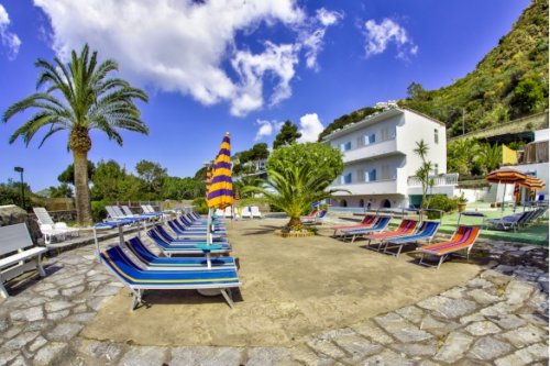 Hotel se nachází pouhých 50 metrů od největší pláže ostrova Ischia,