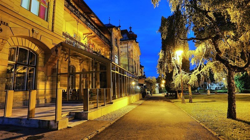 V areálu lázní se nachází 4 hotely hotel Alexander ****, Ozón ***, Astória *** a Mír , depandance hotelů (František, Diana), apartmánové domy Carola a Palmira, léčebné domy Alžběta a Helios a 10 menších dalších ubytovacích zařízení – penzionů. V areálu jsou dále k dispozici: kavárny, cukrárny, restaurace, Wi-Fi internet v hotelu Ozón a Astória, léčebné prameny, kolonáda, tenisový areál (4 letní antukové kurty a tenisová hala s umělou antukou), solná jeskyně, bowling (3 dráhy), squash, biliár, zapůjčení Nordic Walking holí a kol, petanque. Nabídka procedur: rehabilitace, masáže, léčebné inhalace, vodoléčba a sauny, elektroléčba, uhličité terapie, minerální a přísadové koupele, haloterapie – solná jeskyně, pitná kúra, lymfodrenáže, fototerapie. WELLNESS SPA v Hotelu Ozon**** VODNÍ SVĚT:relaxační bazén (21 m x 11 m, hloubka 1,2 m, teplota vody 32 oC), klidový bazén (4×11 m, hloubka 1,2 m, 36 oC) s atrakcemi: vodní dělo, hydromasážní trysky, dnová perlička, protiproud aj.), dětský bazén (6,5×2,5 m, s hloubkou 0,2 m, 34oC) a atrakcemi: vodní ježek a zvon, skluzavka **SAUNOVÝ SVĚT: suchá, parní, inhalační a infrasauna, Kneippova koupel, vyhřívaná lavice, ledové vědro, přívalová sprcha, tropická a masážní sprcha, tepidárium. Dále je v komplexu: bar, masáže, fitness, solárium, beauty studio (kadeřnictví, kosmetika, pedikúra)