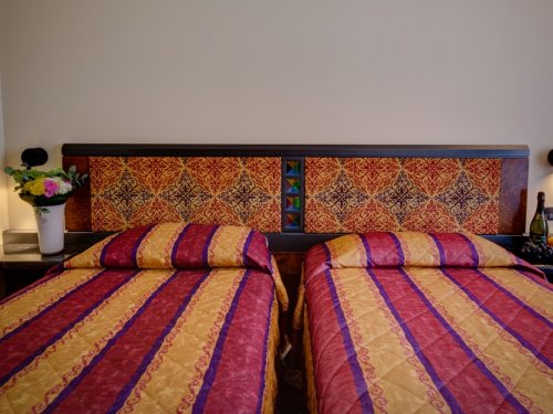 Dvoulůžkový pokoj Privilege s balkonem (cca 16 m2) max. 2 osoby typ DAV:Jsou vybaveny 43″ LCD TV, minibarem (nealkoholické nápoje zdarma), večerním úklidem, příslušenstvím pro přípravu čaje a kávy, telefonem, bezplatným wi-fi připojením k internetu, satelitní TV, trezorem a klimatizací (cca od poloviny června do poloviny září, dle uvážení vedení), balkonem a koupelnou se sprchou; v těchto pokojích nejsou povolena domácí zvířata. Kouření je zakázáno. Dvoulůžkový pokoj bez balkonu (cca 16 m2) max. 3 osoby typ DB:Vkusně a pohodlně zařízené a vybavené koupelnou s vanou a/nebo sprchou, županem a pantoflemi, fénem, minibarem, příslušenstvím pro přípravu čaje a kávy, telefonem, bezplatným Wi-Fi připojením k internetu, satelitní TV, trezorem a klimatizací (cca od poloviny června do poloviny září, dle uvážení vedení). Některé z nich jsou vhodné pro hosty se zdravotním postižením. Dvoulůžkový pokoj s balkonem (cca 16 m2) max. 3 osoby typ DA: Nedávno zrekonstruované, vkusně a pohodlně zařízené a vybavené vlastní koupelnou s vanou a/nebo sprchou, županem a pantoflemi, fénem, minibarem, kávovarem, telefonem, bezplatným Wi-Fi připojením, satelitní TV, trezorem a klimatizací (cca od poloviny června do poloviny září, dle uvážení vedení). Balkon se židlemi a malým stolkem. Jednolůžkový pokoj (cca 16 m2) typ E: Vkusně a pohodlně zařízené a vybavené koupelnou s vanou a/nebo sprchou, županem a pantoflemi, fénem, minibarem, příslušenstvím pro přípravu čaje a kávy, telefonem, bezplatným Wi-Fi připojením k internetu, satelitní TV, trezorem a klimatizací (cca od poloviny června do poloviny září, dle uvážení vedení).