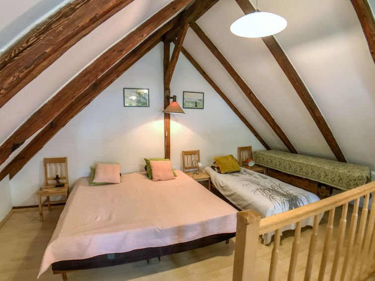 2-pokojový dům 60 m2 na 2 podlažích. Částéčně zkosený, velmi pěkné a útulné zařízení: obývací pokoj/jídelna s 1× pohovka pro 2 osoby, TV-satelit a rádio. Malá kuchyně (2 plotýnky, trouba, mikrovlnka). Sprcha/WC. Topení v podlaze, boiler (60 l). V horním patře: zkosen 1× pokoj s 2× lůžko a 1× francouzským lužkem. Terasa. K dispozici: Internet (Wireless LAN [WLAN], zdarma). Pozor prosím: nekuřácký byt.