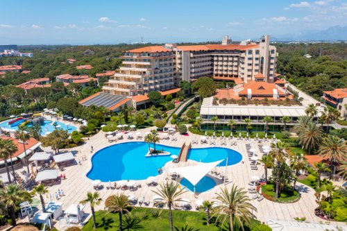 Moderní hotel se nachází v turistické oblasti Belek a to pouhých 5 km od jeho centra. Rozlehlý areál o celkové ploše 135 000 m2 se pyšní skvělou polohou přímo u dlouhé a široké písečné pláže, která v přilehlé části o délce 290 m náleží hotelu jako soukromá. Hlavní město oblasti Antalya je vzdáleno 42 km. Snadno se do něj, stejně jako do dalších zajímavých míst lokality, dopravíte místní autobusovou dopravou. Zastávka je vedle hotelového komplexu. Pro milovníky je golfu je velice snadno přístupný golfový resort (2 km). Mezinárodní letiště je vzdáleno pouhých 32 km (doba transferu cca 30 min).