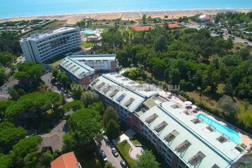 Elegantní, kompletně oplocená rezidence se nachází cca 200 m od pláže, od které je oddělena piniovým hájem. Pláž, která nabízí veškeré služby je dosažitelná po chodníku. Nákupní centrum je vzdálené od rezidence cca 150 m. Budova se skládá ze 3 pater, všechna patra jsou dostupná výtahem. V podzemí jsou k dispozici garáže. Klienti mohou využívat bazén pro dospělé a děti, Wi-Fi ve veřejných prostorech (za poplatek) a parkoviště. Apartmány jsou zařízeny moderně a elegantně. Mají klimatizaci, mikrovlnnou troubu, kávovar, trezor a TV.