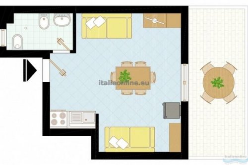 Type B4 (bilo4): obývací místnost s kuchyňským koutem, gaučem pro