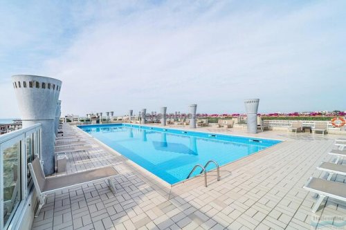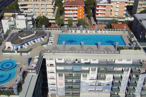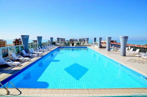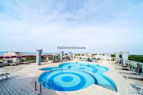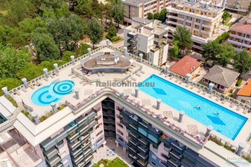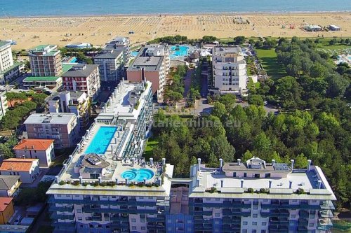 Moderní turistický komplex se nachází cca 100 m od moře v zóně termálních lázní, pár kroků od hlavní obchodní třídy a současně v přírodním prostředí borovicového háje. Klientům jsou k dispozici 2 střešní bazény (bazén pro dospělé a brouzdaliště pro děti), prostorná opalovací terasa pro slunění, 7 výtahů, prádelna na žetony, Wi-Fi u bazénu (za poplatek), parkoviště a garáže. Všechny apartmány mají bezpečnostní dveře, TV, klimatizaci, trezor, mikrovlnnou troubu, kávovar a balkon. Apartmány typu C7 mají navíc pračku a myčku. Půjčení povlečení a ručníků při příjezdu zdarma (případná výměna během delšího pobytu za poplatek), nutno požádat o ně v agentuře při příjezdu.