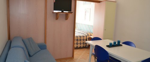 Apartmán BILO pro 4 osoby – obývací místnost s kuchyňským koutem a rozkládacím gaučem pro 2 osoby, dvoulůžková ložnice, koupelna, klimatizace a velký balkon. Apartmán BILO 1 pro 4 osoby – obývací místnost s kuchyňským koutem a rozkládacím gaučem pro 2 osoby, dvoulůžková ložnice, koupelna, klimatizace a balkon. Bez výtahu a bez parkovacího místa. Apartmán BILO pro 6 osob – obývací místnost s kuchyňským koutem a rozkládacím gaučem pro 2 osoby + výklenek s palandou, ložnice s rozkládacím gaučem pro 2 osoby, koupelna a klimatizace. Bez balkonu.
