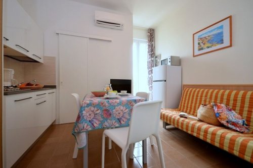 Apartmán MONO pro 2 osoby A-2: obývací pokoj s vysouvací manželskou postelí, kuchyňský kout, koupelna, malý balkon, bez parkovacího míst