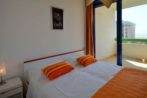 Apartmán BILO pro 4 osoby B-4: obývací pokoj s rozkládací dvoulůžkovou pohovkou, kuchyňský kout, ložnice s manželskou postelí, koupelna, velká terasa, klimatizace.