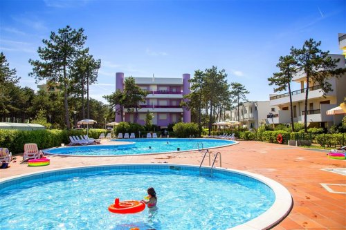 Velmi pěkná residence, obklopená zelení v klidné části letoviska Bibione zvané Lido del Sole, je vhodná především pro rodiny s dětmi. Residence se nachází cca 350 m od pláže. Residence byla zvenčí v roce 2015 zrekonstruována a aktuálně má světle fialovou barvu. V roce 2025 byly nově renovované koupelny ve všech apartmánech. Mezi vybavení residence patří venkovní bazény (v provozu v závislosti na počasí), lehátka u bazénu (omezená kapacita), výtah, terasa, zahrada, dětské hřiště, WiFi připojení ve společných prostorách (provoz limitován), 1 parkovací místo/apartmán. Všechny apartmány jsou zrekonstruované a moderně zařízené. Povlečení je za poplatek cca 10 €/osoba, ručníky nejsou k dispozici. Dětská postýlka je na vyžádání za poplatek cca 6 €/den.