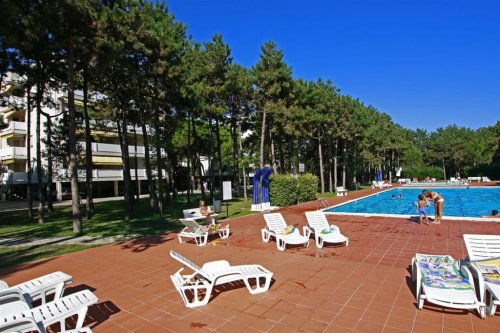 Tato příjemná residence, složena ze tří budov, se nachází ve velkém parku plném zeleně, cca 500 m od pláže. Mezi vybavení residence patří bazén pro dospělé a děti (v provozu v závislosti na počasí), výtah, sluneční terasa, zahrada, dětské hřiště, animace 600 m od ubytování, stolní tenis (bez náčiní), 1 parkovací místo/apartmán. Pro děti je k dispozici dětská postýlka za poplatek 6 €/den. Všechny apartmány jsou účelně zařízené a vybavené vlastním sociálním zařízením, klimatizací, SAT/TV, mikrovlnnou troubou, pračkou (poslední tři zmiňované mají jen některé apartmány), lednicí a balkonem se zahradním nábytkem. Některé apartmány nedávno prošly rekonstrukcí. Za příplatek je k dispozici pronájem ložního prádla za cenu 10 €/set. Domácí zvířata do 10 kg jsou povolena na vyžádání za poplatek 50 €/pobyt.