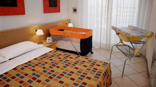 - Zapůjčení cestovní postýlky pro děti 0–3 roky za 5 €/den (bez povlečení)