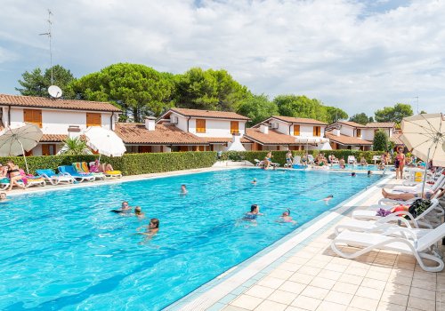 Menší villaggio SOLE B je tvořeno jednopatrovými vilkami, uprostřed kterých se nachází bazén pro dospělé a dětský bazén. Klientům jsou k dispozici parkovací místa a minibus na pláž zdarma.
