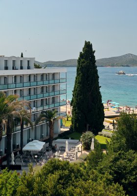 moderní hotel cca 50 m od centra města Biogradu na Moru. V areálu – restaurace, kavárna, směnárna, sejf, TV místnost, výtah, terasa, WI-FI v lobby baru a internetový koutek ZDARMA. Společenské místnosti jsou klimatizované.