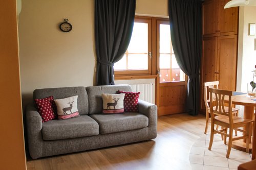 obývací pokoj s kuchyňským koutem a rozkládacím gaučem pro 2 osoby,