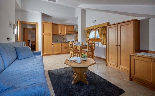 obývací pokoj s kuchyňským koutem a rozkládacím gaučem pro 2 děti do