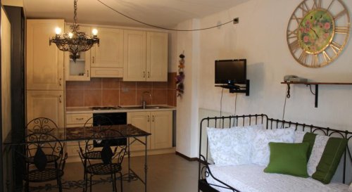 zařízení, obývací pokoj s rozkládacím gaučem, kuchyňský kout,