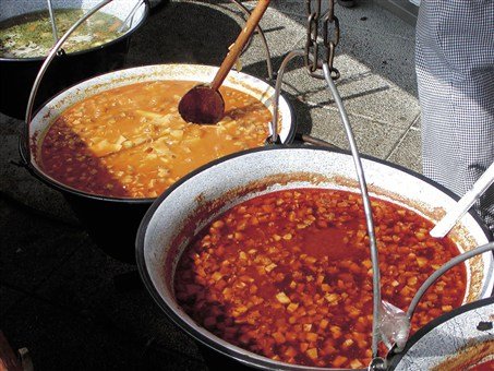 3× snídaně formou bufetu.Obědy lze řešit 1× v tržnici (několik bufetů a restaurace s typickou maďarskou kuchyní) a 1× doporučí průvodce návštěvu palačinkárny s bohatou nabídkou typického rychlého občerstvení v Maďarsku (cca 20 druhů slaných a 20 druhů sladkých palačinek, dortů a pohárů. Na Velikonoční pondělí určitě ochutnáte něco z maďarské gastronomie ve skanzenu při velikonoční veselici.