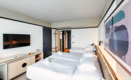 moderní hotel, který se skládá ze dvou částí (Východní křídlo se stravou formou all inlusice a Západní křídlo s polopenzí) v bezprostřední blízkosti lázeňského komplexu, se kterým je propojen vnitřní chodbou