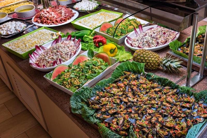 Ahrada, tři bazény, terasa na slunění, bar, restaurace, výtah, TV místnost, dětské hřiště, WiFi, animace. Za příplatek: trezor, stolní tenis, billiard.
