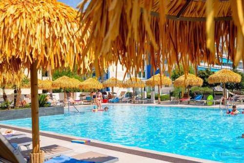 velký bazén se sluneční terasou a brouzdalištěm, umístěný