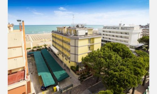 Hotel Touring leží přímo u pláže zvané „Spiaggia di Ponente“, ve