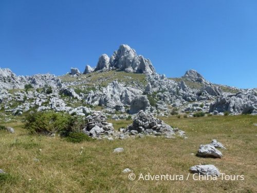 Přejezd do sedla Vrhprag v pohoří Velebit s krátkou zastávkou ve městě Zadar, odtud pěší výlet na velmi malebné vápencové skály Tulove Grede – legendární Nugget-sil, kde zemřeli Inču-čuna a Nšo-či; večer dojezd přes Obrovac ke Starigradu.
