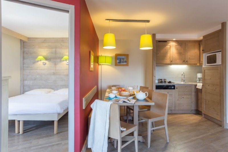 - kuchyně s lednicí, mikrovlnnou troubou, myčkou na nádobí, sporákem, kávovarem, rychlovarnou konvicí, a přístrojem na raclette