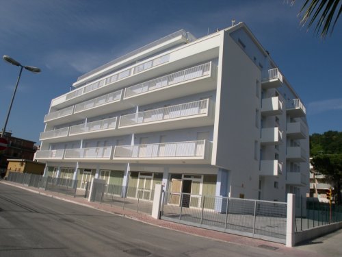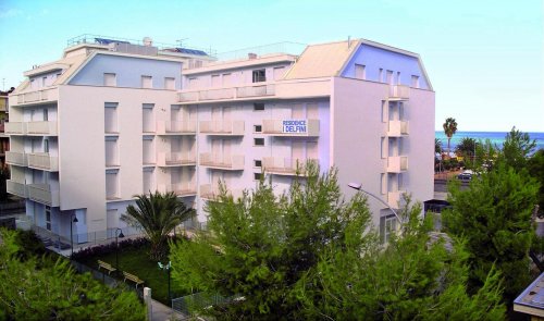 Residence I DELFINI (Via Kennedy) se nachází kousek od pláže a nedaleko centra. Klientům je k dispozici recepce s Wi-Fi, výtah, střešní bazén se solární terasou a lehátky, kryté parkovací místo (na vyžádání, za poplatek) a půjčovna kol (za poplatek). V blízkosti residence vede železniční trať, která však nemá velký rušivý efekt.