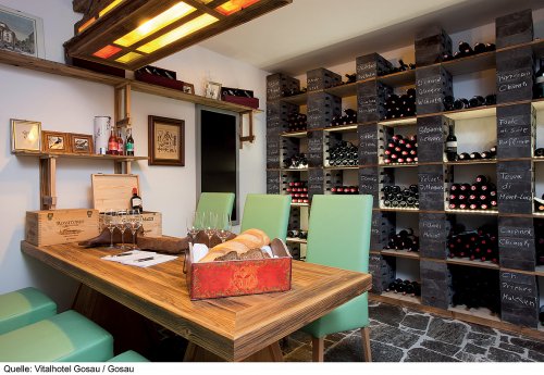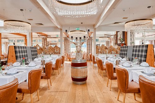 hosty, stylová restaurace „Zirbenstübe“, bar „Ranch“, vinný sklípek,