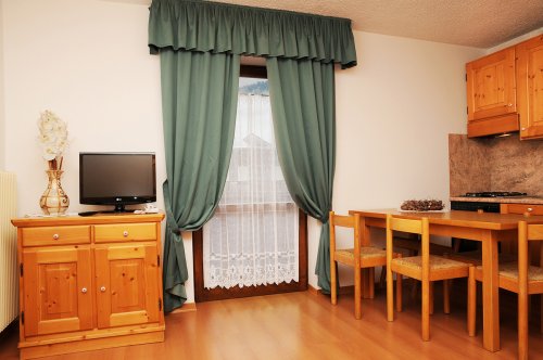 - pěkný a udržovaný apartmánový dům v klasickém horském stylu s pozicí v centru oblíbeného turistického městečka Mezzana