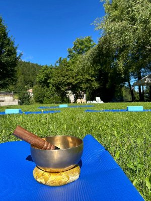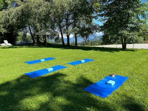 zahrada s lehátky, lekce jógy* a pilates* (v termínech od 3.7 do 30.8.);