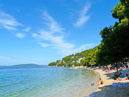 Pouhých cca 50 m od hotelu se nachází oblázková pláž, lemovaná borovicemi, poskytující přírodní stín. Pláž má pozvolný vstup do moře a je tak vhodná pro rodiny s dětmi. K dispozici jsou zde i sprchy. Možnost zapůjčení lehátek na pláži za poplatek.