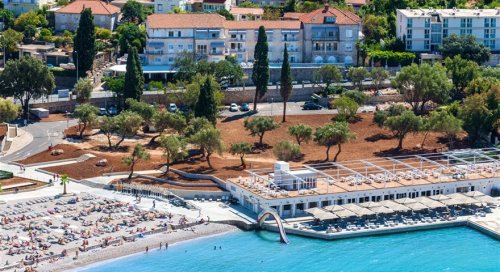 Hotel je obklopen bohatou středomořskou vegetací a nacházá na poloostrově Lapad, cca 4 km od historického centra Dubrovníku. Pláž je přes místní komunikaci, je oblázkovo-kamenitá v části s upravenými betonovými platby na slunění. Lehátka a slunečníky na pláži jsou za poplatek.