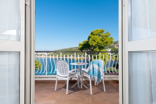 2lůžkové pokoje, sociální zařízení, fén, klimatizace, SAT TV, WiFi, telefon a balkon na mořskou stranu. Pokoje s přistýlkou jsou na vyžádání.