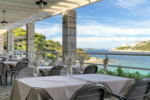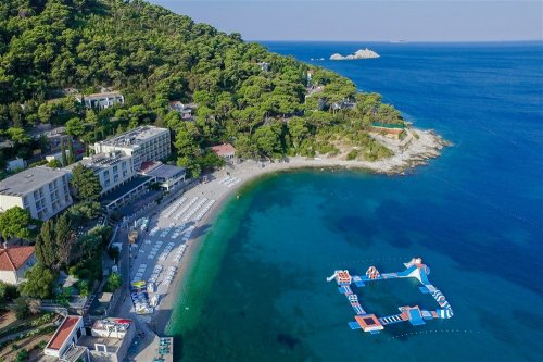 Hotel leží na poloostrově Lapad v bezprostřední blízkosti oblázkovo-kamenité pláže s betonovými platy na slunění, asi 4 km od historického centra Dubrovníku. Lehátka a slunečníky za poplatek.