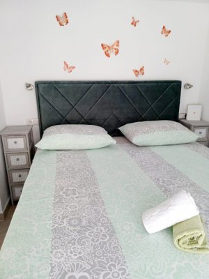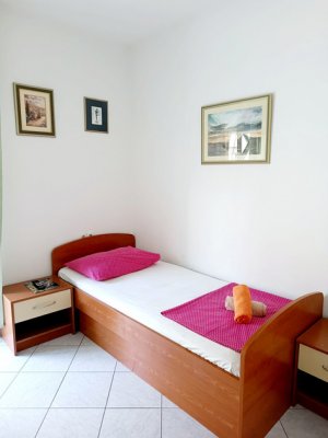 Apartmány mají obývací část s vybavenou kuchyní pro vaření a stolování, sociální zařízení, SAT TV, WiFi, balkon či terasu, jedno parkovací místo ve dvoře nebo na ulici zdarma a zahradní gril. Klimatizace je za poplatek 6 EUR/apartmán/den. Ložní prádlo je v ceně apartmánu.Apartmán pro 2 osoby AP2 – má 2lůžka v denní místnosti, je v 1. patře, 19 m2.Apartmán pro 3 osoby AP3 – má jednu 2lůžkovou ložnici a 1 lůžko v denní denní místnosti, jsou v 1. a 2. patře, 40 m2.Apartmán pro 4 osoby AP4 – má jednu 2lůžkovou ložnici a lůžek (rozkládací gauč) v denní místnosti, jsou ve 2. a 3. patře, 58 m2.