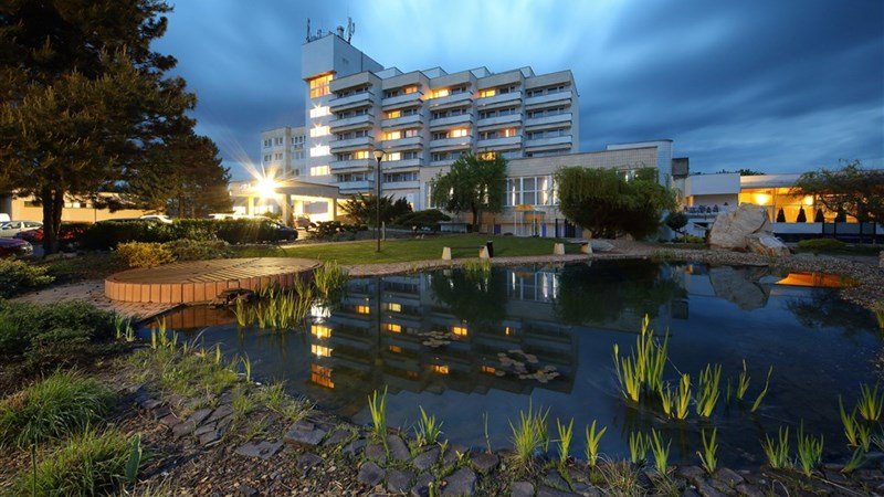Rekonstruovaný komplex hotelu Hviezda *** Dudince je obklopený zelení a parkem a nabízí klientům možnost nerušeného oddychu v klidné části města. Nejvíce slunečních dní v roce zažíváme právě v tomto malé městečku, které vám svojí klidnou atmosférou dopřeje ten pravý relax. Dudince leží 16 km od hranic s Maďarskem a jsou známé svou jedinečnou minerální vodou. Uhličito-siřité složení vody je jedinečné na Slovensku i v zahraničí. Základní léčivou složkou při nemocech cév srdce je oxid uhličitý a u nemocí pohybového a nervového systému je to síra, ve formě sirovodíku.